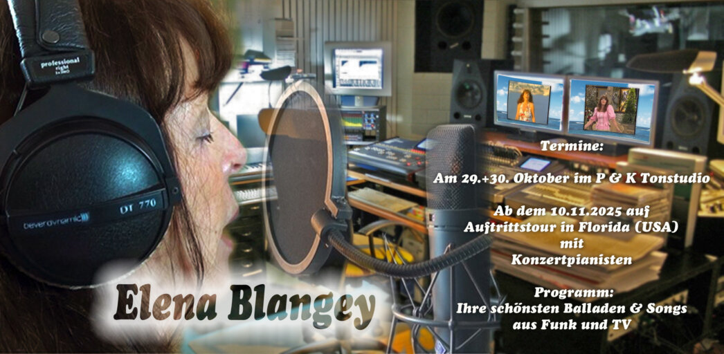 Von der bevorstehenden Longplay CD, präsentiert Elena Blangey demnächst die Auskopplung des Titeles "Einsame Insel". Frank Syda und Peter Schmiedel haben diesen Song für die Interpretin geschrieben. Wer träumt nicht schon mal, allein auf einer Insel zu sein. Abzuschalten und ohne Trubel die Seele baumeln zu lassen.